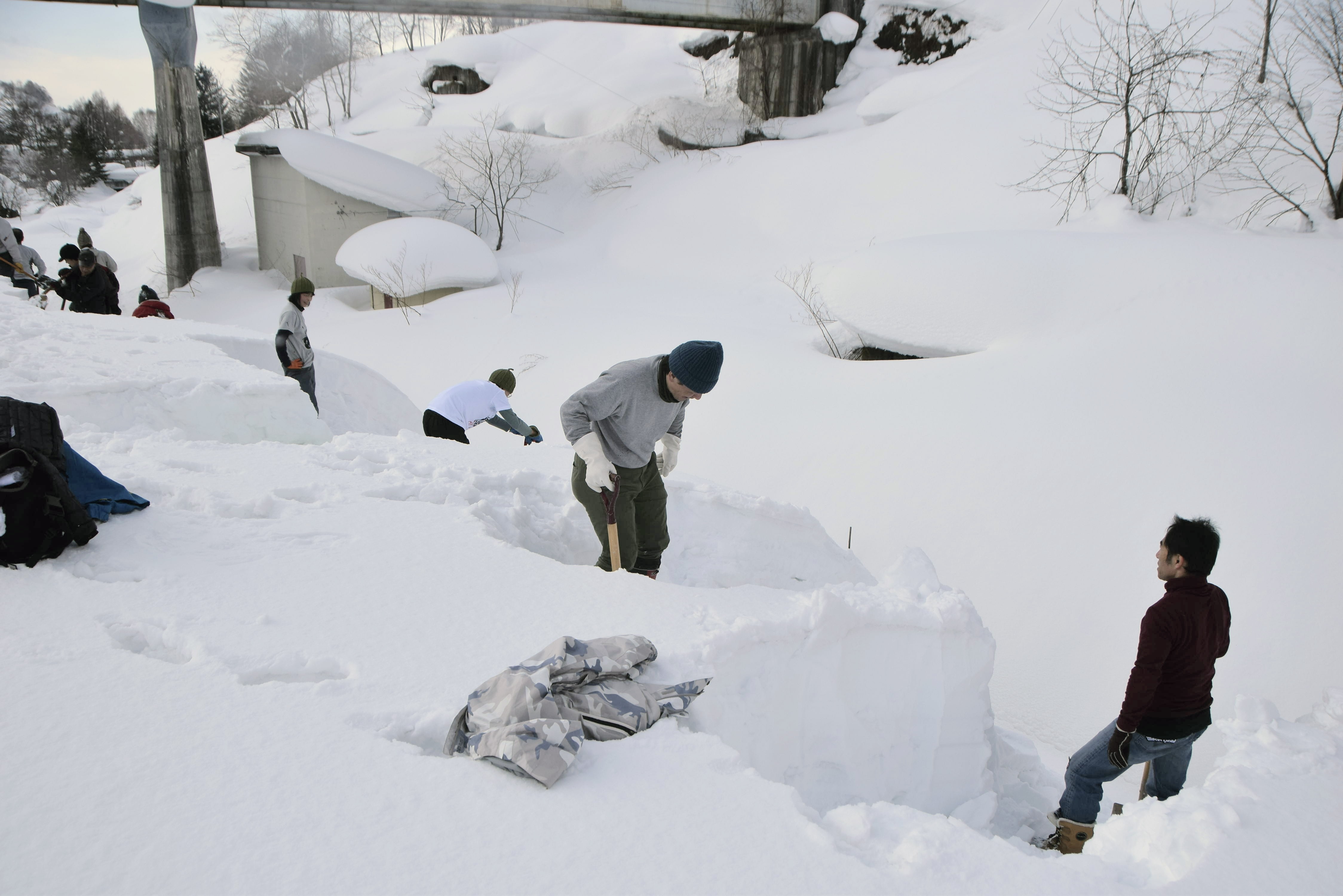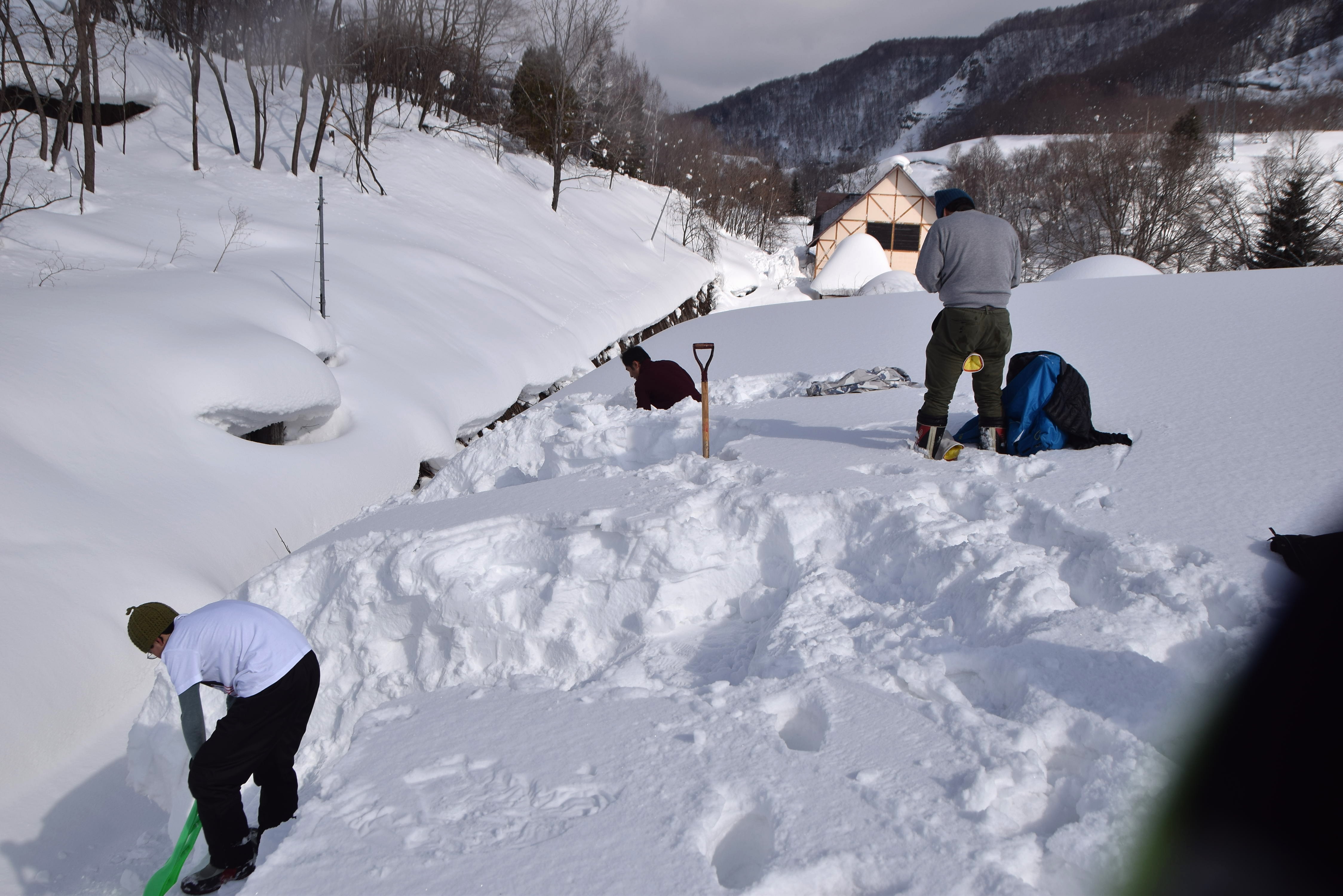 雪は固く締まっていてスコップで崩すのも大変でした。