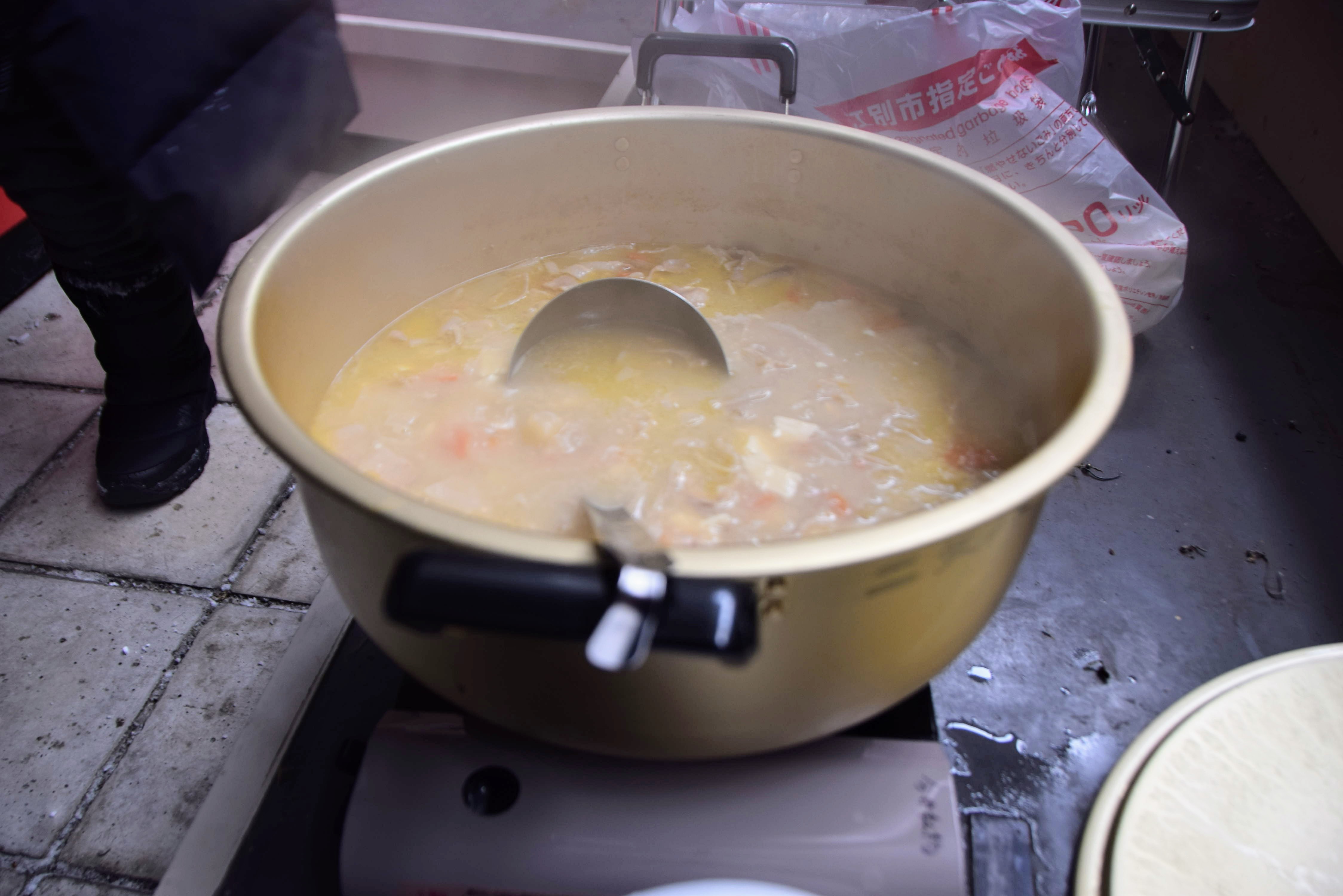終了後はSLをおかずに保存会名物の豚汁。