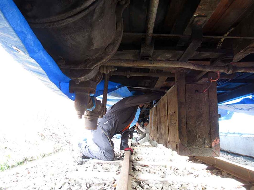 11月 10, 2024 保存車両は冬眠 今年最後の作業 hozonkai 保存会からのお知らせ 0 Comments 今日は天気が良く、無風でシート掛け日和。雪もとけて良かった。 灯具も開いておく シートのハトメが取れているので修理する。 これが無いと紐縛りに苦労するのだ。 駅名標を取り外して車内へ。 風で飛ばないように紐縛り。 オハ1の床下。 シート掛け終了して冬眠へ バスも冬眠 スズメバチから守ってくれたオニヤンマ君も冬眠。 今年は巣が作られなかったから効果有った? 来年も頼むよ。 お疲れ様でした。それでは4月下旬まで冬眠します。 シューパロダムから見た保存車両。 中央からちょっと左側の青いヤツ。